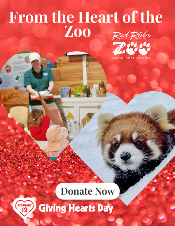 The Red River Zoological Society was formed in 1993 with the intent of building a premier zoological facility in Fargo, North Dakota. Through land sold and donated to the Fargo Park District by the Anderson Family, the Red River Zoo was able to obtain a long term lease (99 years) of 34 acres with the intent of building a zoo. Thanks to the progressive vision and thinking of leaders in the Fargo community, the Red River Zoo was constructed and opened to the public in May of 1999.