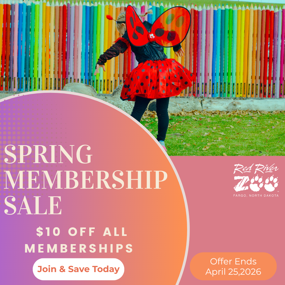 The Red River Zoological Society was formed in 1993 with the intent of building a premier zoological facility in Fargo, North Dakota. Through land sold and donated to the Fargo Park District by the Anderson Family, the Red River Zoo was able to obtain a long term lease (99 years) of 34 acres with the intent of building a zoo. Thanks to the progressive vision and thinking of leaders in the Fargo community, the Red River Zoo was constructed and opened to the public in May of 1999.